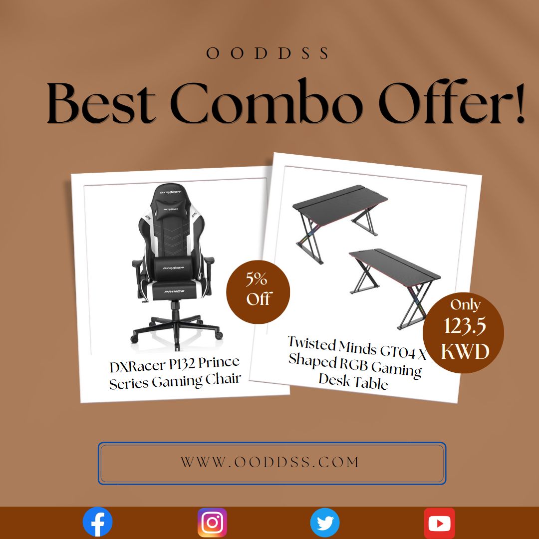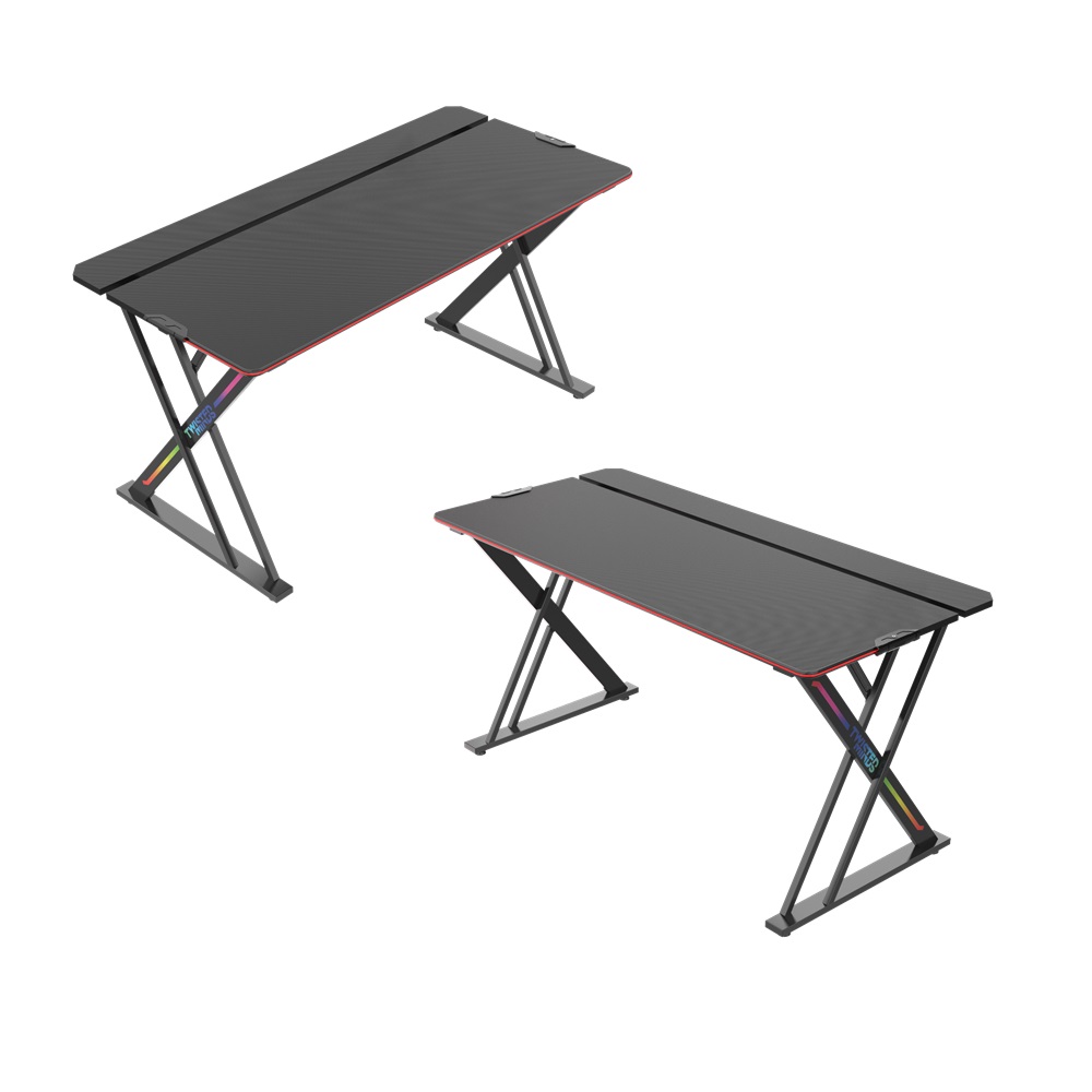 - Gaming Chair – Black/White + X Shaped RGB Gaming Desk Table – 150cm