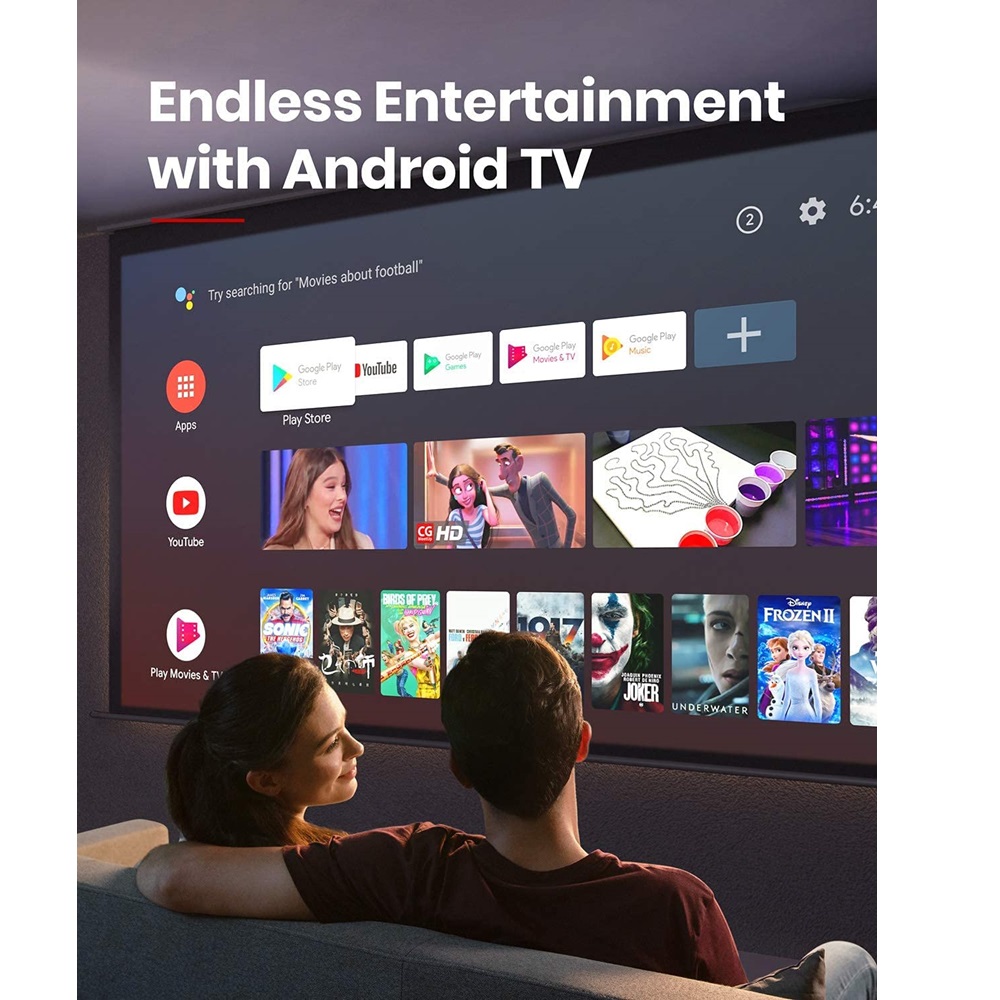 True Cinema Experience Dolby Digital Plus & 4x10W Android TV 9.0 / 1500 ANSI lumens 4K & HDR10 for clear and vivid images 60-150 in: 150 in @3.98m; 120 in @3.18m 100 in @2.65m; 80 in @2.13m; 60 in @1.59m Connectivity – HDMI, USB, Bluetooth, WiFi, and Chromecas