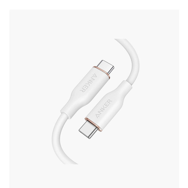 Anker PowerLine III Flow USB-C to USB-C 100W (0.9m/3ft) -White Soft Touch Silicone Finish 25,000-bend lifespan Bend It, Twist It, Flex It Tangle-free. Supports a Max power Output of 100W. Compatible with USB-C device. Soft Touch Cable. Extremely Bendable. High-Speed Data Transfer. .25Mins Fast Charging