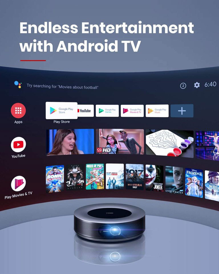 Anker Nebula Cosmos Full HD 1080p Home Entertainment Projector Cinema in Your Home: Cosmos’s radiant 1080p, 900-ANSI-lumen image features HDR10 so you can watch favorite movies, sports events, games, and more as if you were there in person. Upscale Everything: Cosmos breathes new life into your old DVDs, videos, and even live TV broadcasts thanks to Hybrid Log Gamma (HLG). It automatically detects when you’re watching non-HDR content and upscales it in real-time so everything you watch looks sensational. Sensational Sound: Cosmos’s speakers deliver 360° of true audio courtesy of Dolby Digital Plus. Hear every moment as if you were in the cinema itself. Fit for Any Home: Adjust the size of Cosmos’s image in an instant with the simple touch of a button via the built-in digital zoom. All the Apps: Android TV 9.0 is your gateway to a universe of awesome entertainment. Download Prime Video, YouTube, and thousands of other apps, movies, games, and more.