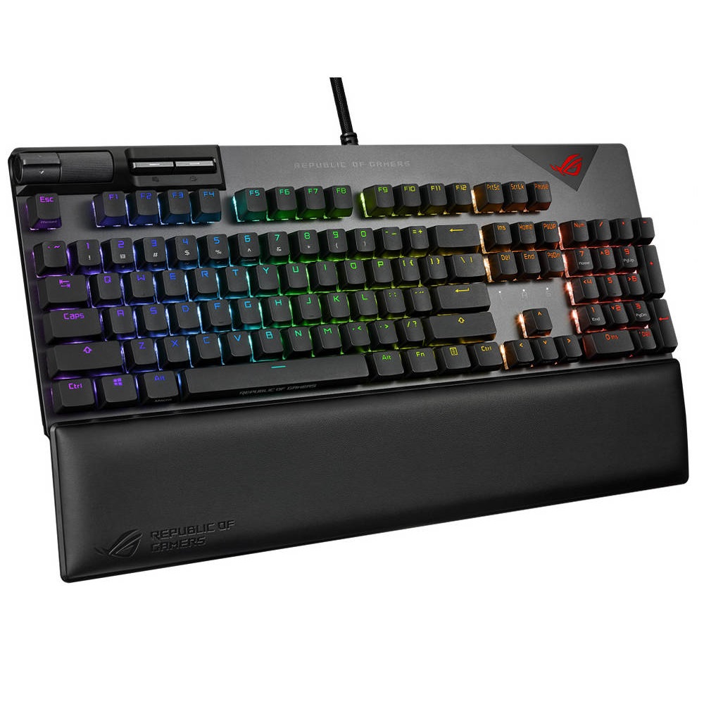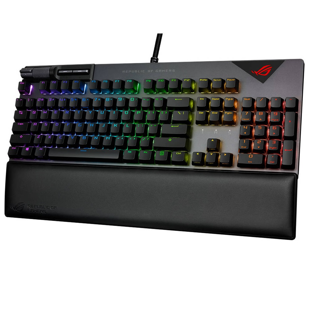 • ROG NX mechanical switches: Lubricated stem for smooth clicks, lubricated housing to eliminate bouncing noises, fast actuation and ROG-tuned force curves for great keystroke feel with great keystroke consistency.
