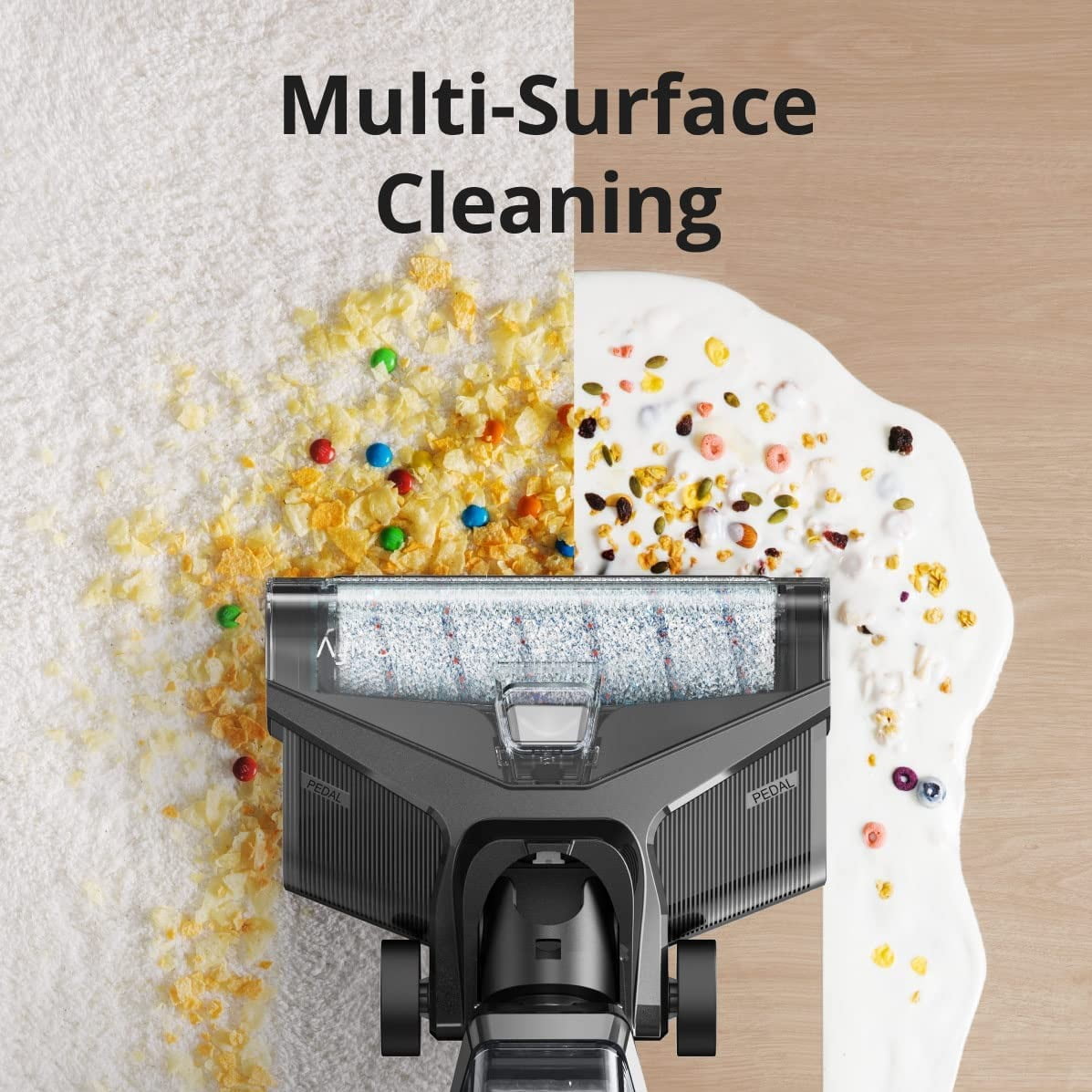 Eufy WetVac W31 Wet Dry Vacuum Cleaner and Mop MULTI-SURFACE CLEANING: The two specially designed rolling brushes are perfect for a variety of hard floors and carpets throughout your home. SELF-CLEANING WITH AUTO-DRY TECHNOLOGY: After you’ve finished using WetVac to clean your floors, WetVac will automatically wash and dry itself at its charging base for odor-free storage. 5-IN-1 CLEANING MACHINE: WetVac not only vacuums, but it also conveniently cleans its rolling brush as it mops. Plus, it auto cleans and dries itself after cleaning your floors. 2,500 RPM ROLLING BRUSH: At 2,500 RPM, the rolling brush efficiently lifts dirt from your floors as the 12,500 Pa suction power sucks it in so you can enjoy a deeper, more thorough clean. 35-MIN LONG RUNTIME: Enjoy up to 35 minutes* of uninterrupted cleaning to handle messes big and small, wet and dry. *According to data measured in the eufy laboratory.