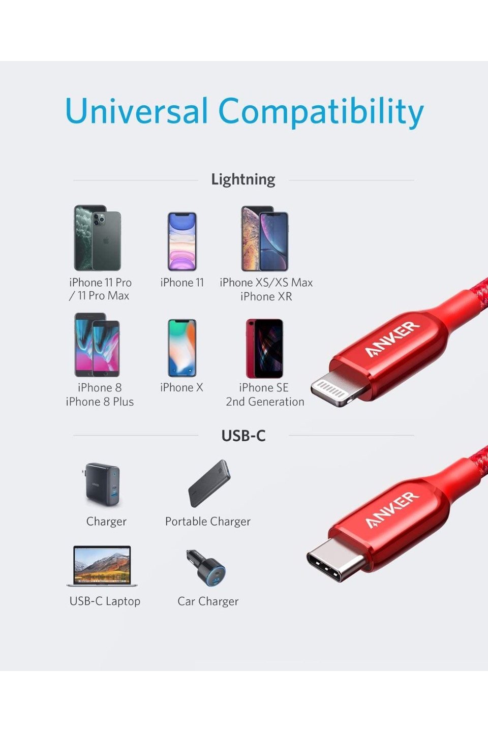 Anker PowerLine + III USB-C to Lightning (0.9m/3ft) – Red The Anker Advantage: Join the 50 million+ powered by our leading technology. High-Speed Charging Compatible: Connect to a Power Delivery-enabled charger to power your iPhone to 50% in just 30 minutes. (Charger not included) Built to Last: With an ultra-strong 25,000-bend lifespan, PowerLine III is built to withstand every twist, tug, and tangle. Certified Compatible: MFi certified for flawless compatibility with virtually all Lightning devices including iPhone and iPad. What You Get: PowerLine III USB-C to Lightning Cable (1 ft), welcome guide, our worry-free lifetime warranty, and friendly customer service.