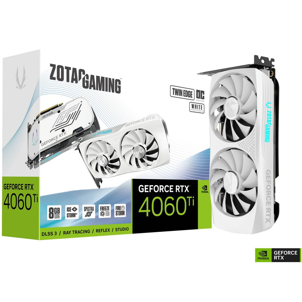 - ZOTAC 8GB GAMING GeForce RTX 4060 Ti Twin Edge OC White Edition VGA Graphic Card