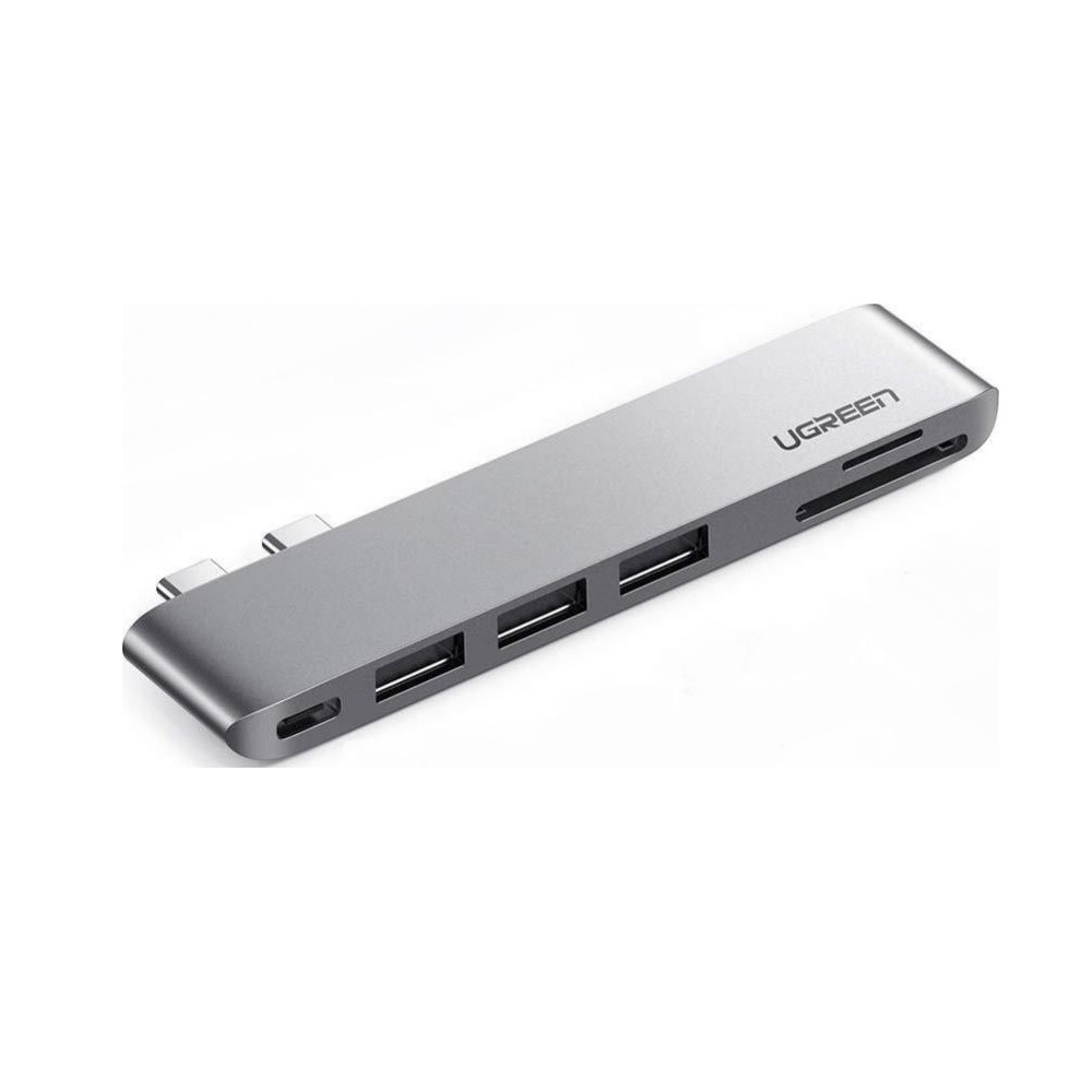 - Tailored for Macbook, the UGREEN 6 in 1 USB-C Hub with 2 USB C connectors with extra USB 3.0 Hub, a thunderbolt 3 port, USB-C port for PD Charging and SD / Micro SD Card reader, enable the Macbook Pro to both to enjoy latest USB C port while keeping the old USB gadget as well;