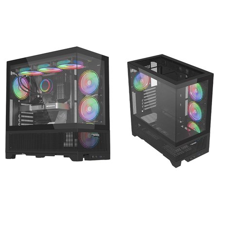 This not only showcases your high-performance components but also adds a touch of luxury to your setup. The front panel, adorned with tempered glass and mesh, combines aesthetics with optimal airflow for a perfect balance.