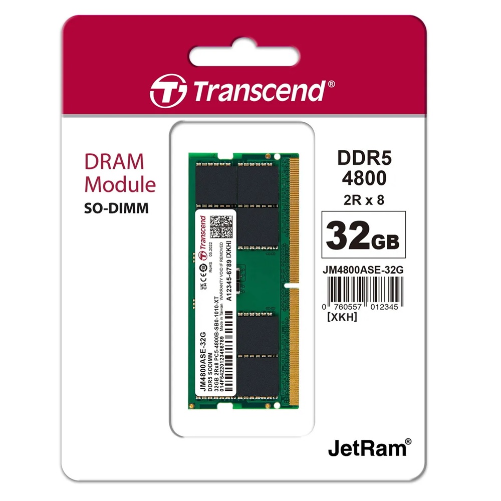 - Transcend 32GB 4800MHz DDR5 laptop RAM SODIMM Memory
