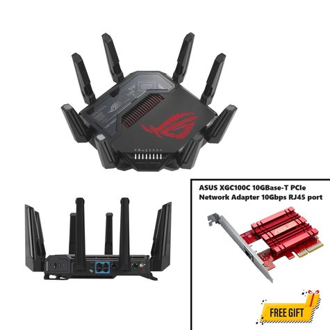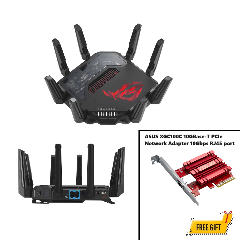 • ASUS ROG Rapture GT-BE98 BE25000 Quad-band WiFi 7 Gaming Router + (FREE GIFT) ASUS XGC100C 10GBase-T PCIe Network Adapter 10Gbps RJ45 port