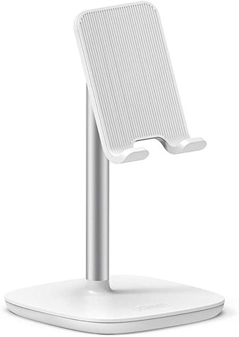 THICKER METAL, MORE DURABLE: Made of premium aluminum alloy, UGREEN Phone Holder is solid and sturdy. Allows you to adjust different angles without worrying about tipping over. The heavy-duty base stands up to your iPhone just as you like it. The sleek design with smooth metal makes this phone stand a very cool look, and is a suitable choice for those people seeking product quality.