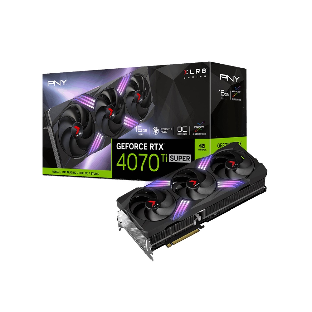 - PNY 16GB GeForce RTX 4070 Ti SUPER XLR8 Gaming VERTO EPIC-X RGB Overclocked Triple Fan DLSS 3 VGA Graphic Card