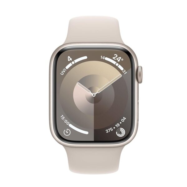 • Apple Watch Series 9, 45mm, Starlight Aluminum Case, Starlight Sport Band, (GPS + Cellular)