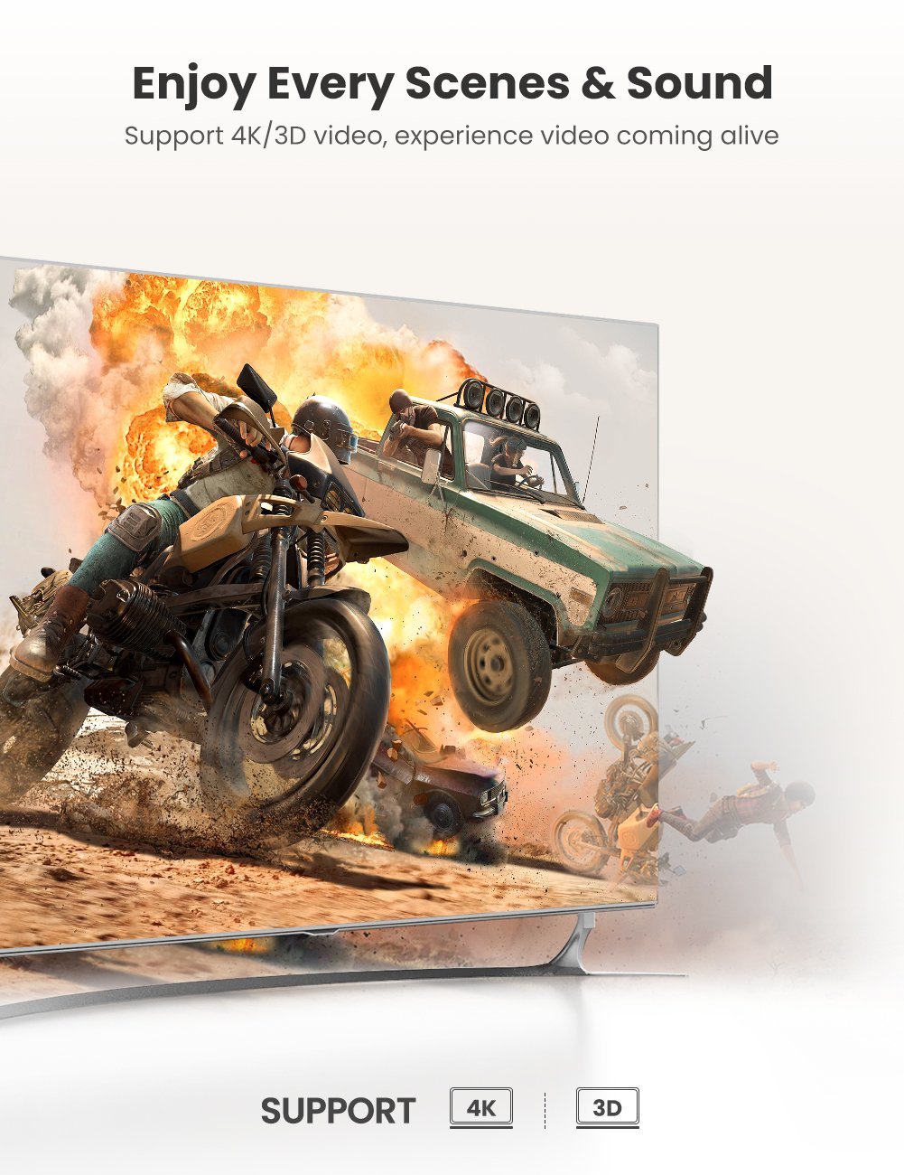 Built-in high performance chip, deliver video at resolution of 4K 4096x2160 @30Hz, 1080P @120Hz, provides the stunning 4K video for you;