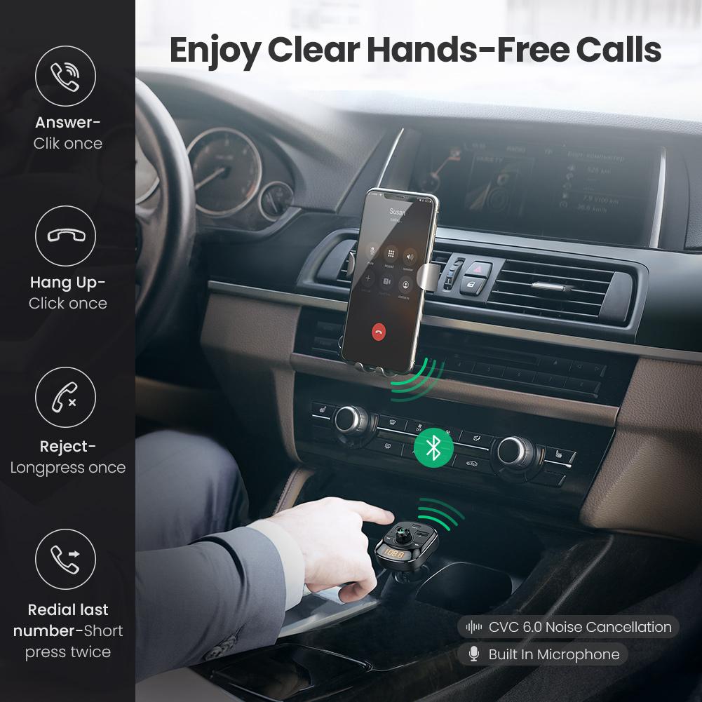 With advanced Bluetooth V5.0 chip, transmit speed up to 3Mb/s, provides faster and stronger pairing and more stable sound than other normal products in the market. High-performance microphone with Noise Suppression (CVC) technology, grants you crystal clear call. Answering/redialing/dismissing or ending call just simply click a button. Drive more safely, seamlessly switches between incoming calls and music.