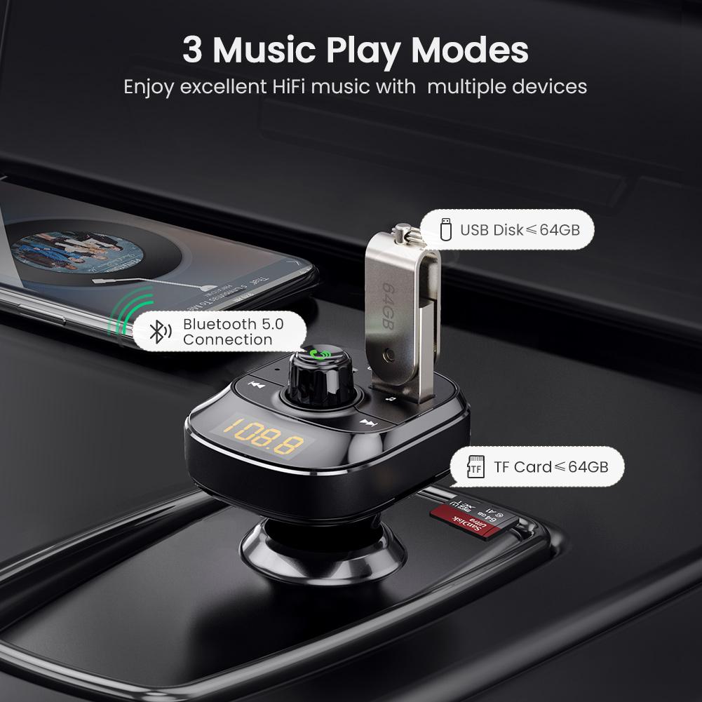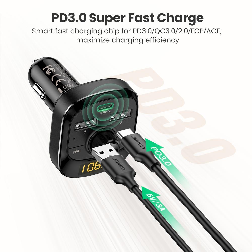 UGREEN PD+QC FM Car Charger+LED Screen+TF Slot (Black)