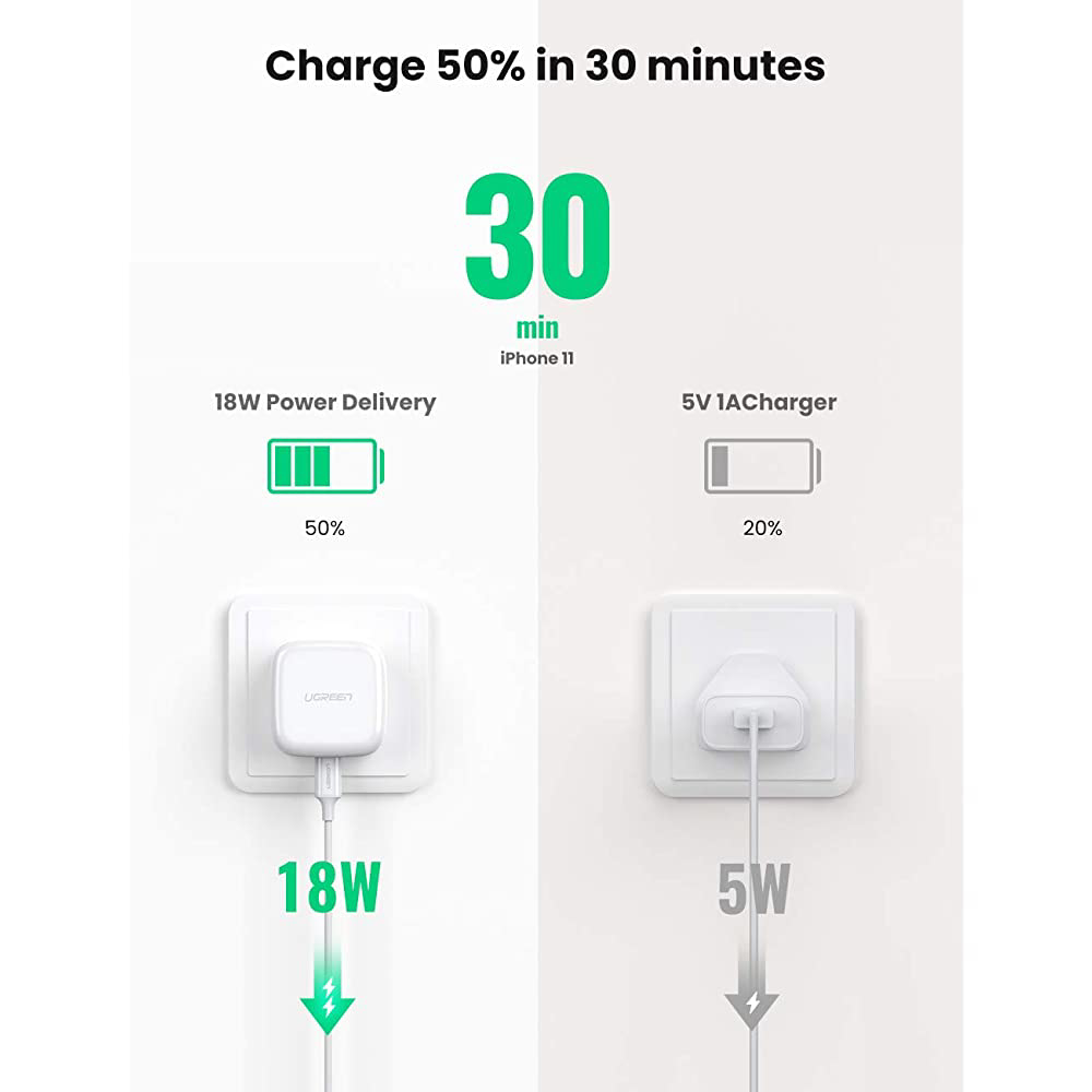 20W PD Charger for iPad Pro 2018& New iPhone11/11 Pro/11 Pro Max, This UGREEN USB Type C Charger is specially designed for iPad Pro 2018 and iPhone latest phones, 18W output enables it to charge iPad pro-2018 as fast as the original adapter., Charging Safely, Built-in multiple protections, this USB C Fast Charger provides all-round protection for you and your devices.