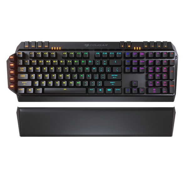 COUGAR 700K is an iF design award mechanical keyboard. We’ve taken its components to another level, which is the upgrade 700K EVO. It keeps the superb quality Cherry MX mechanical keys with extra G-key. The exposed brushed aluminum frame shows dazzling RGB lighting effects. Moreover, 700K EVO provides you more convenient and speedier on-the-fly macro recording and mode switch without getting out of the game. This keyboard is designed to meet all MOBA and MMO gamers’ needs.