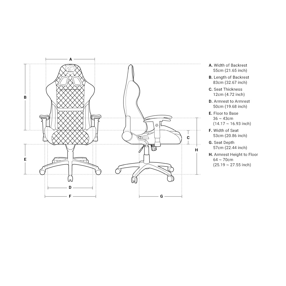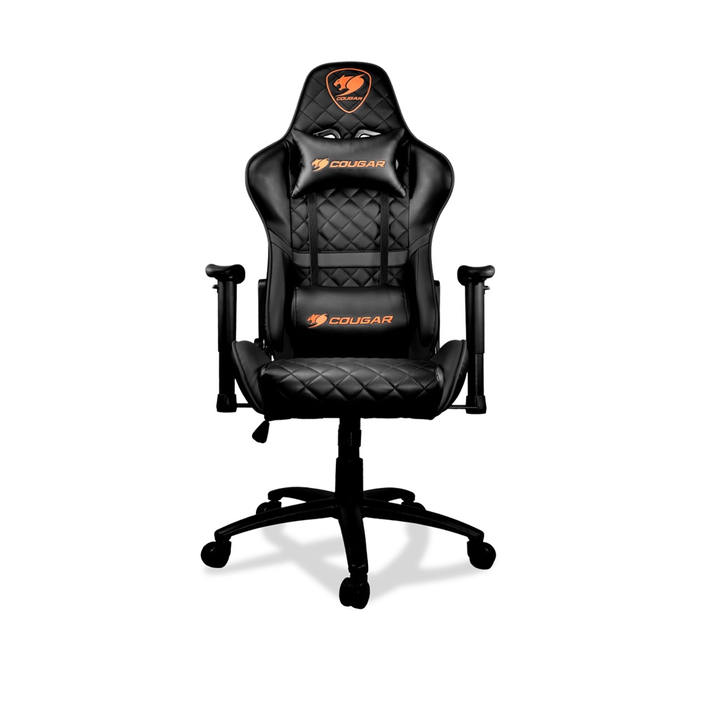Cougar Armor Adjustable Tilting Resistance Piston Lift Height Adjustment High-density shaping foam Continuous 180º Reclining Steel frame, metal base Breathable PVC Leather Head and Lumbar Pillow Delicate embroidery Ergonomic-designed Reclining backrest Weight Limit 120kg