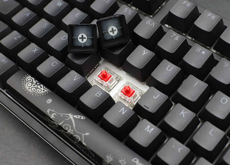 Cherry MX switches has a lifespan of over 50 million operations. Standard cross-shaped design allows user to replace keycaps with ease. Ducky also provides rare switches for selection.
