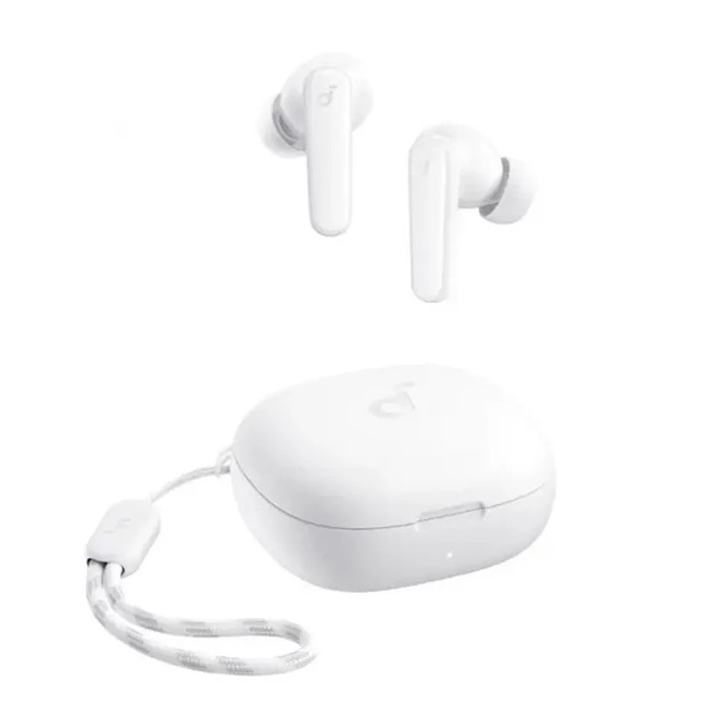 Soundcore R50i true wireless earbuds and the charging case are compact and lightweight with a lanyard attached. Small enough to slip in your pocket, or clip on your bag or keys -so you never worry about space.