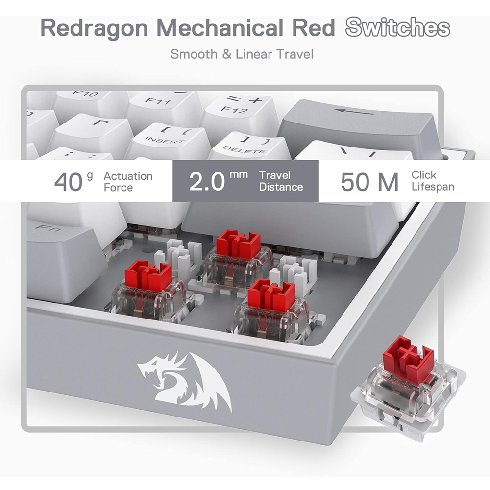 - Redragon K617 Fizz RGB 60% Wired Hot-Swap Mechanical Gaming Keyboard, Red Switch, White / Grey