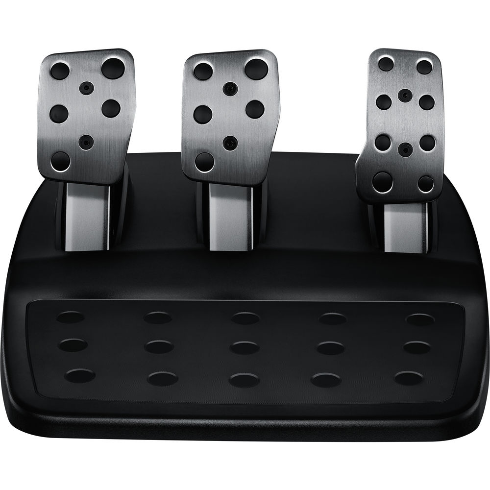 Included with the G29 is a 3-pedal set, complete with the throttle, brake, and clutch. The nonlinear brake pedal mimics the performance of a pressure-sensitive brake system for a more responsive, accurate braking feel. For even more control, you can move the pedals to make heel-toe maneuvers easier to perform. The 3-pedal set has rubber feet for hard surfaces and a patented retractable carpet grip system so it stays in place.