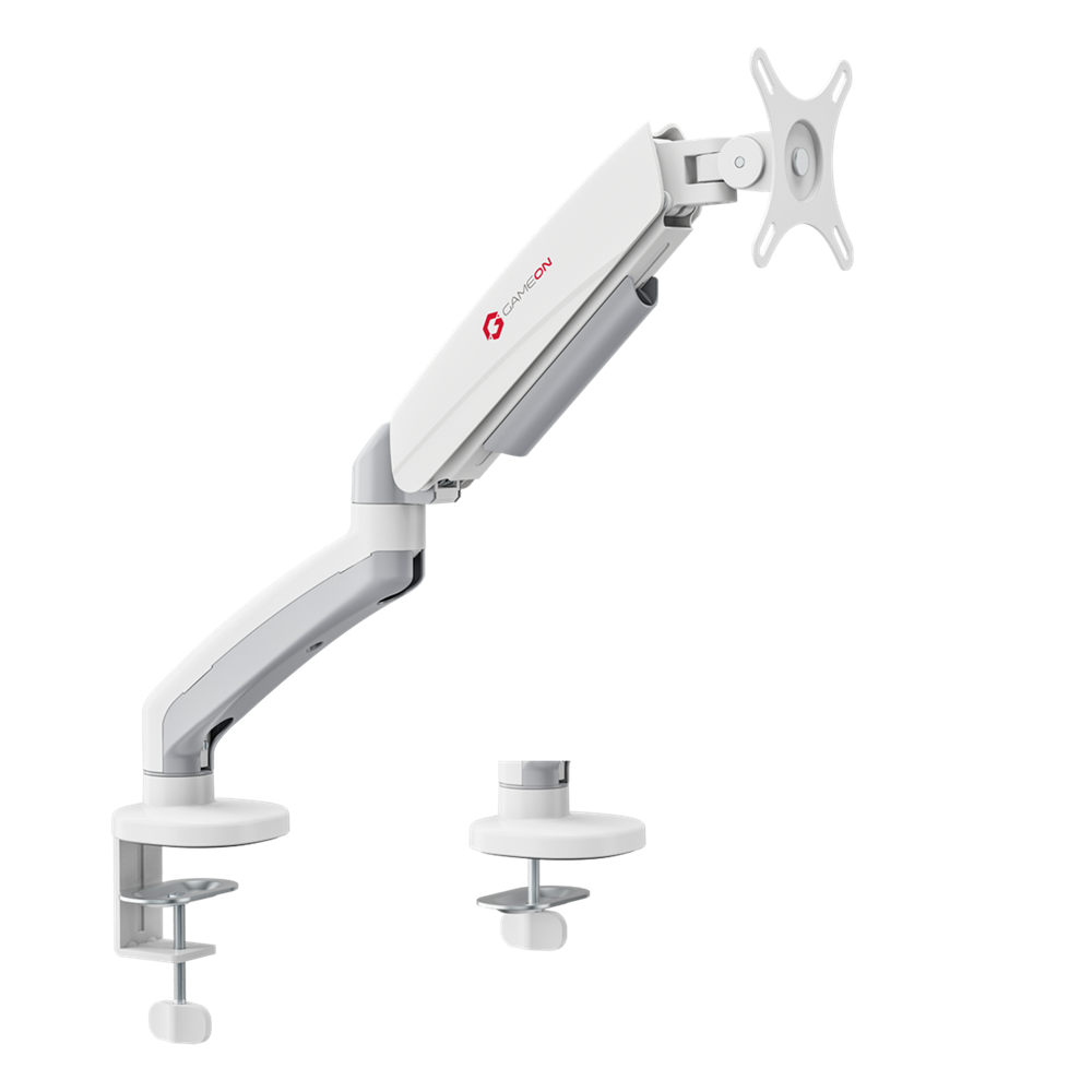 - GameOn GO5400 Single Monitor 17″ – 32″ Arm Desk Mount Table Stand Full Motion Flat, Curved, 2-9 KG – White