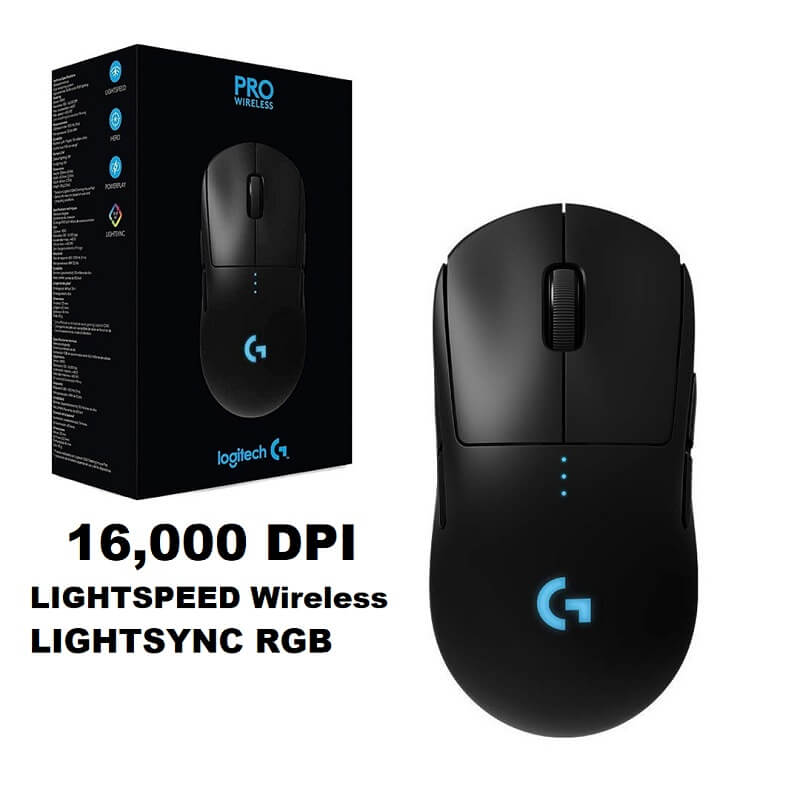 Logitech G Pro Wireless Gaming Mouse, 16000 DPI, 1ms report rate, LIGHTSYNC RGB, USB Charging, Ultra LightWeight, POWERPLAY Compatible