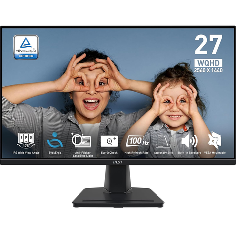 MSI 27″ IPS Panel 2K 100Hz Refresh Rate 1ms Response Time 2x HDMI | 1x DisplayPort Speaker, Wall-mount, TÜV Certified