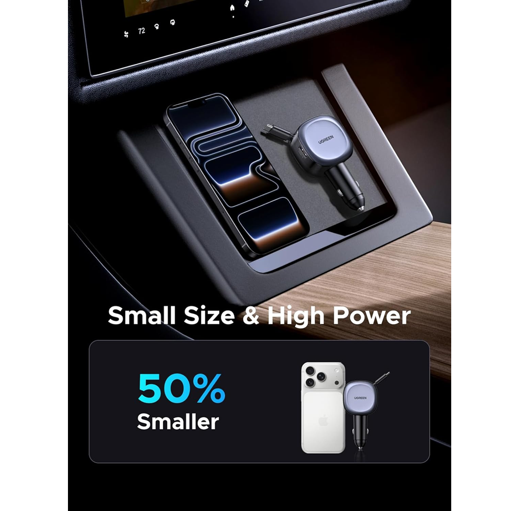 UGREEN EC601 75W Fast Car Charger Adapter with USB-C Retractable Cable