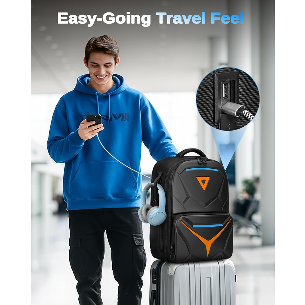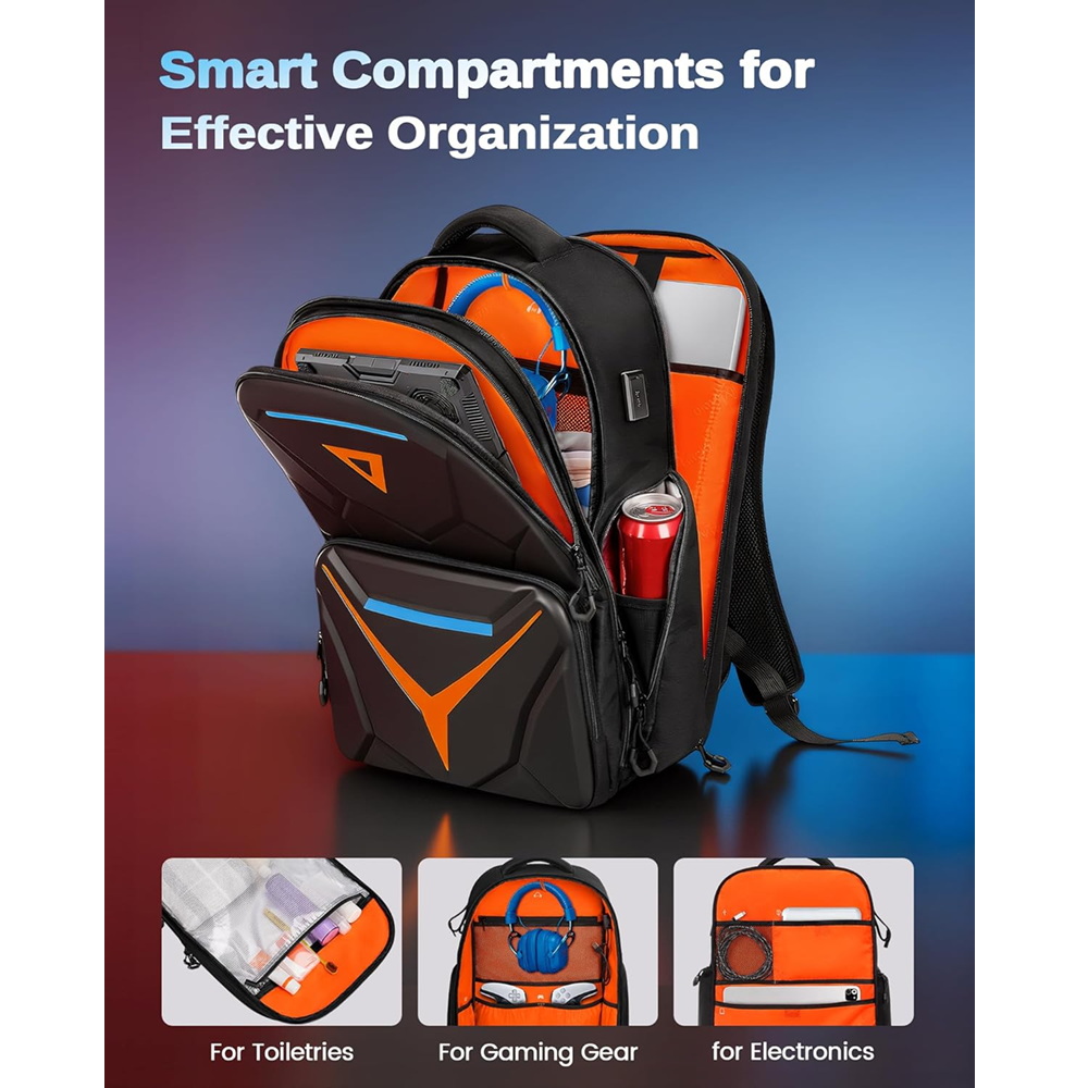 Matein Controller Pockets Cooling Pad Compartment TSA-friendly 180° opening 360° padded shock protection Breathable padded back panel Waterproof rain cover included Backpack Size: 19.6 x 14.4 x 9″