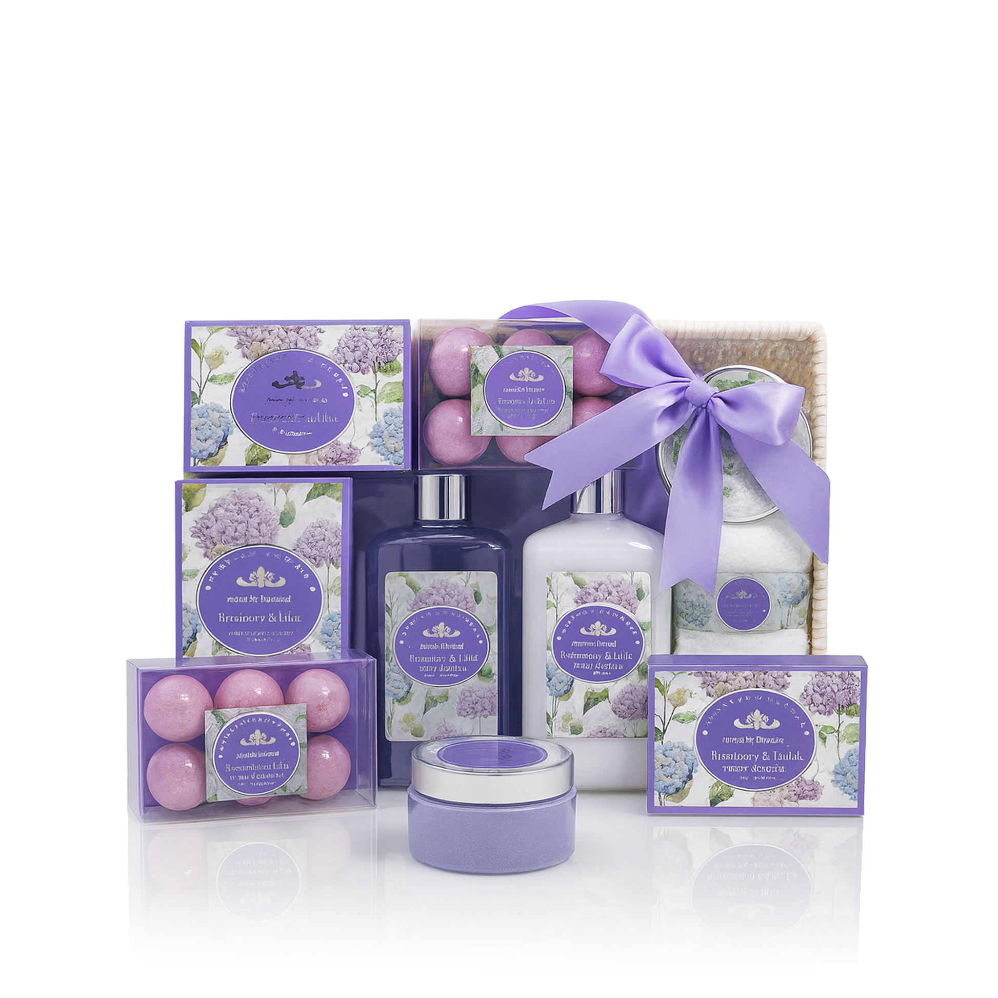 جل الاستحمام 270 مل لوشن الجسم 270 مل مقشر الجسم 120 مل أملاح الاستحمام 200 صابونة 100 جرام فوارات الاستحمام 15 جرام × 6 قطع سلة منشفة الحمام