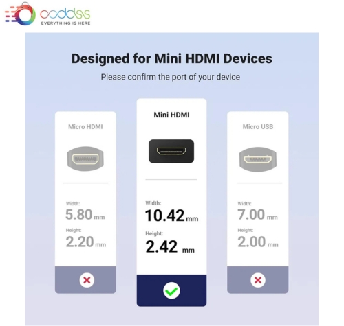 If your camera, Mobile phone or other similar equipment has a mini HDMI port, and you want to use standard HDMI, the UGREEN adapter will be a real hit. Use it to connect your device to a TV and watch your favorite series or travel photos on a bigger screen.