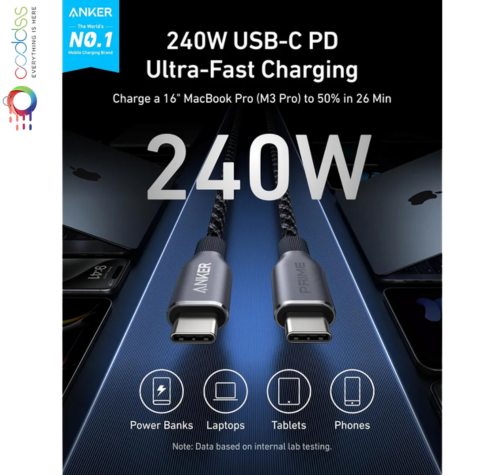 • Anker Prime USB-C to USB-C Cable – 3ft 240W Upcycled-Braided