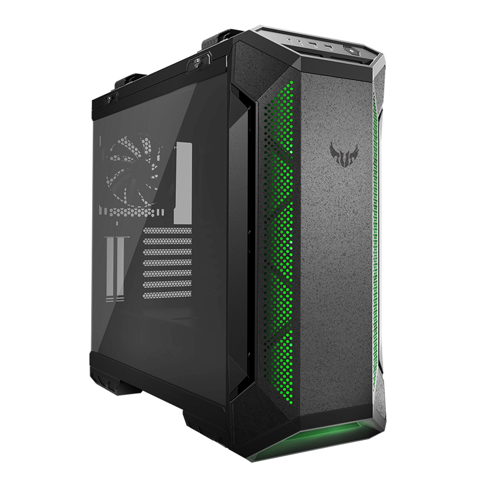 With a full-height, smoked-glass side panel, TUF Gaming GT501 lets you show off your build from top to bottom – so your components, customizations and Aura illuminations are all clearly visible. This panel is tempered for strength, and hinged at the bottom for opening ease.