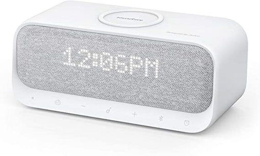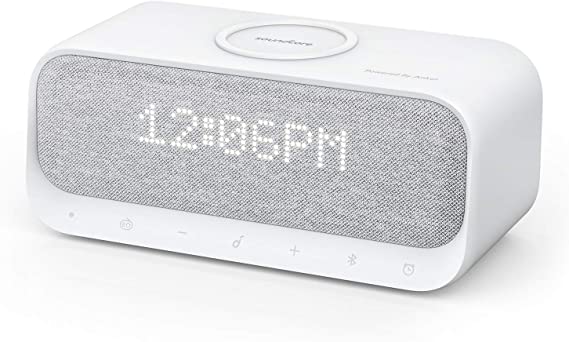- Wakey simplifies your nightstand set-up by combining everything you need for a peaceful nights sleep and a refreshing morning into one compact bedside speaker. You can place your Qi-compatible phone on top of Wakey for fast wireless charging. Wakeys dual drivers fuel perfectly-balanced 10W sound. Stream music and podcasts using Bluetooth, or save up to 10 FM radio stations using the Soundcore app. It also features a built-in sensor that adjusts the brightness of the LED screen