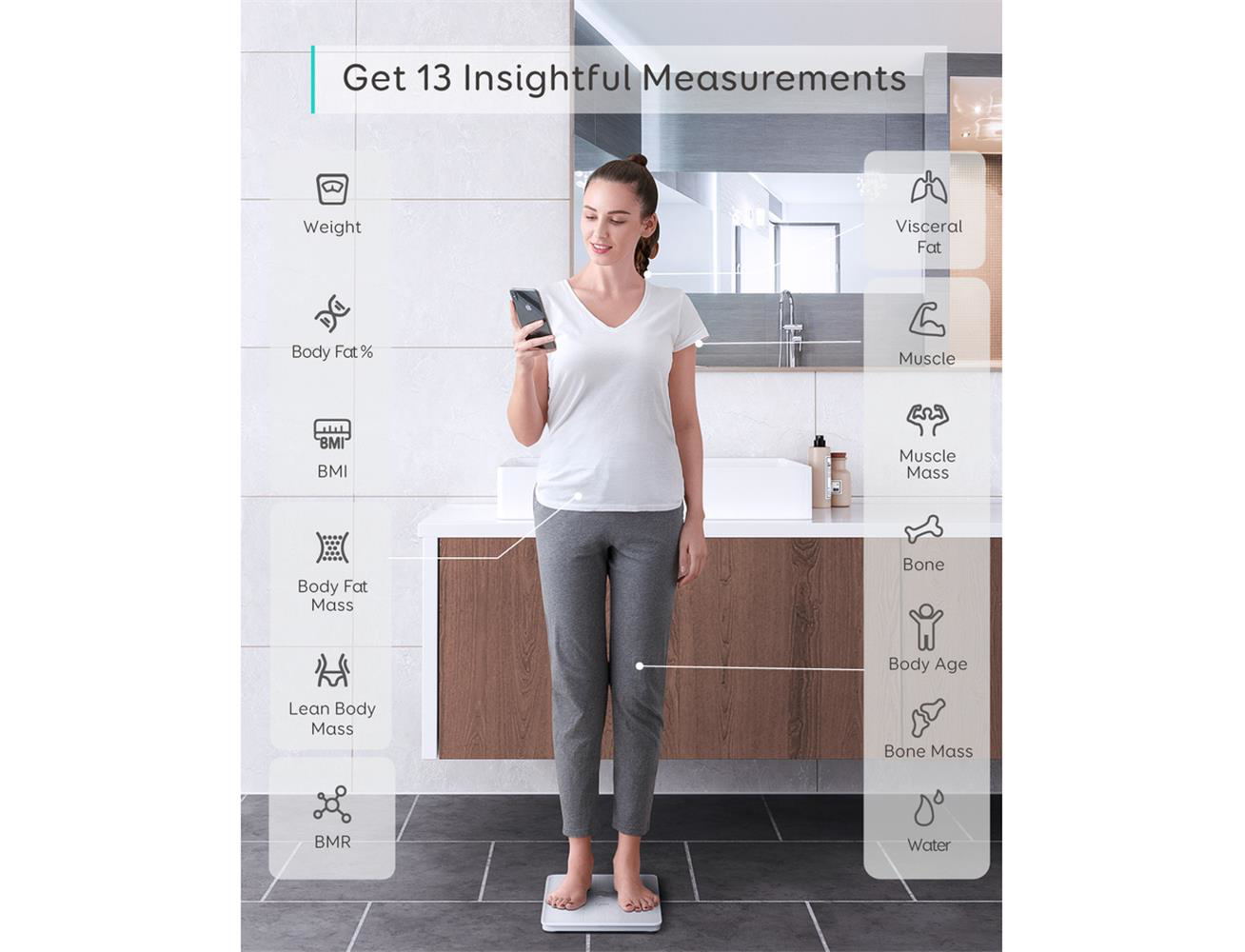 - Holistic Health: Instantly learn 14 insightful measurements of your body's health, such as Weight, Body Fat, BMI, Bone Mass, Muscle Mass, and more.